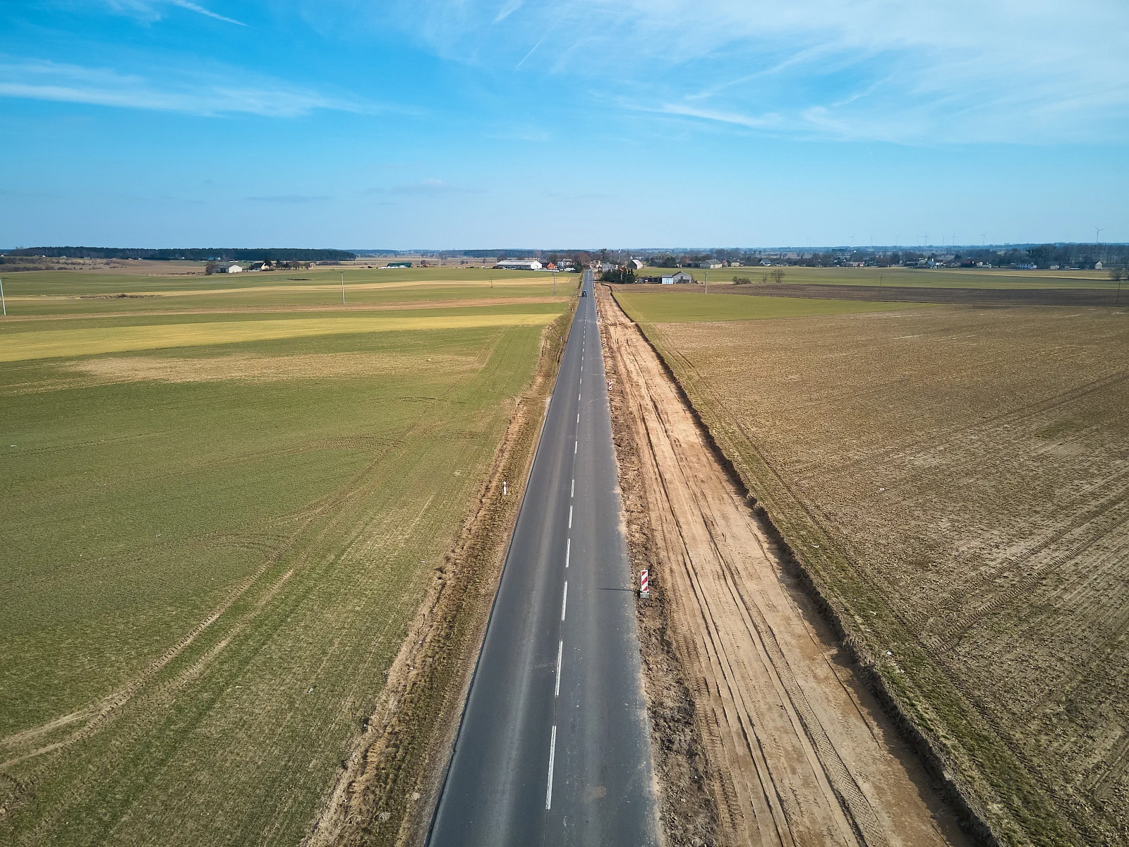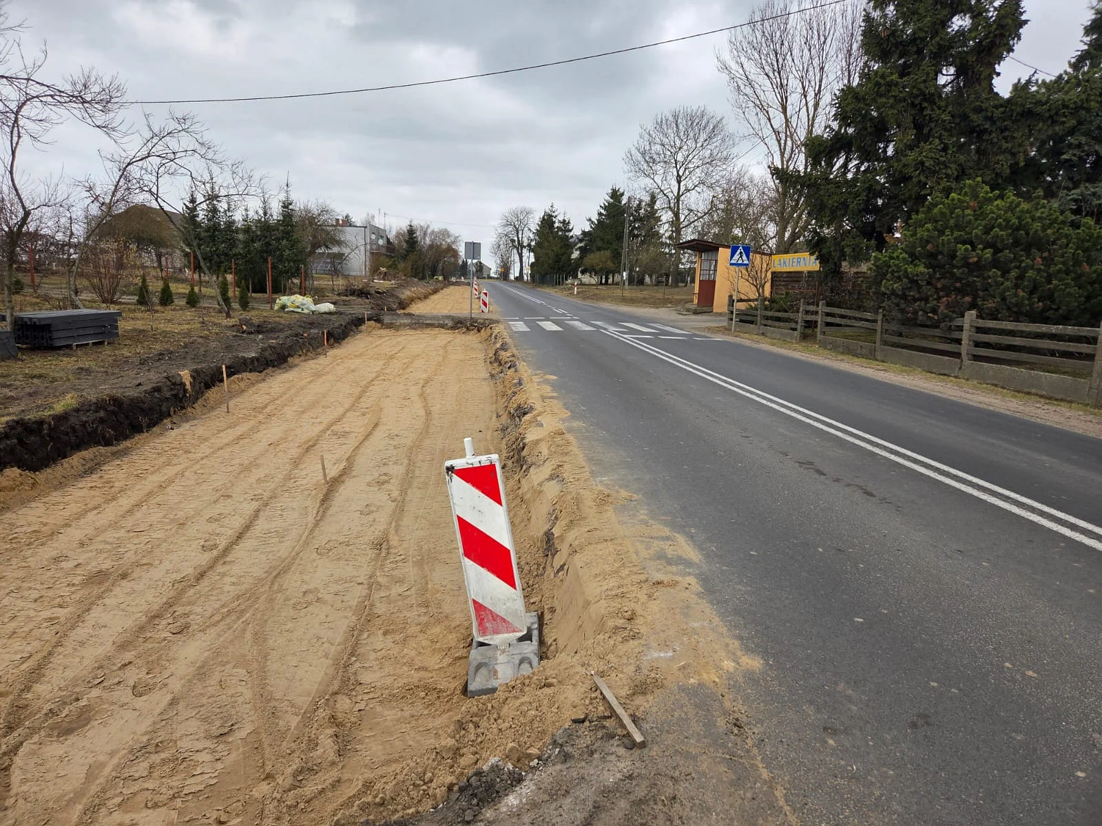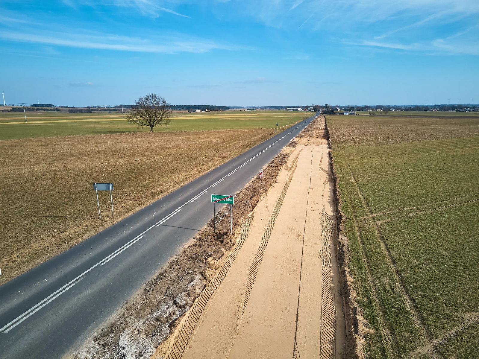 Przypomnijmy, że zakres zadania obejmuje: rozbiórkę istniejącej nawierzchni, poszerzenie jezdni oraz pasa ruchu w rejonie drogi dla rowerów i pieszych, przebudowę zjazdów, budowę ciągu pieszo-rowerowego o łącznej długości 3,55 km, budowę chodnika i peronu, wykonanie krawężników i obrzeży betonowych, wykonanie odwodnienia oraz rowów przydrożnych.