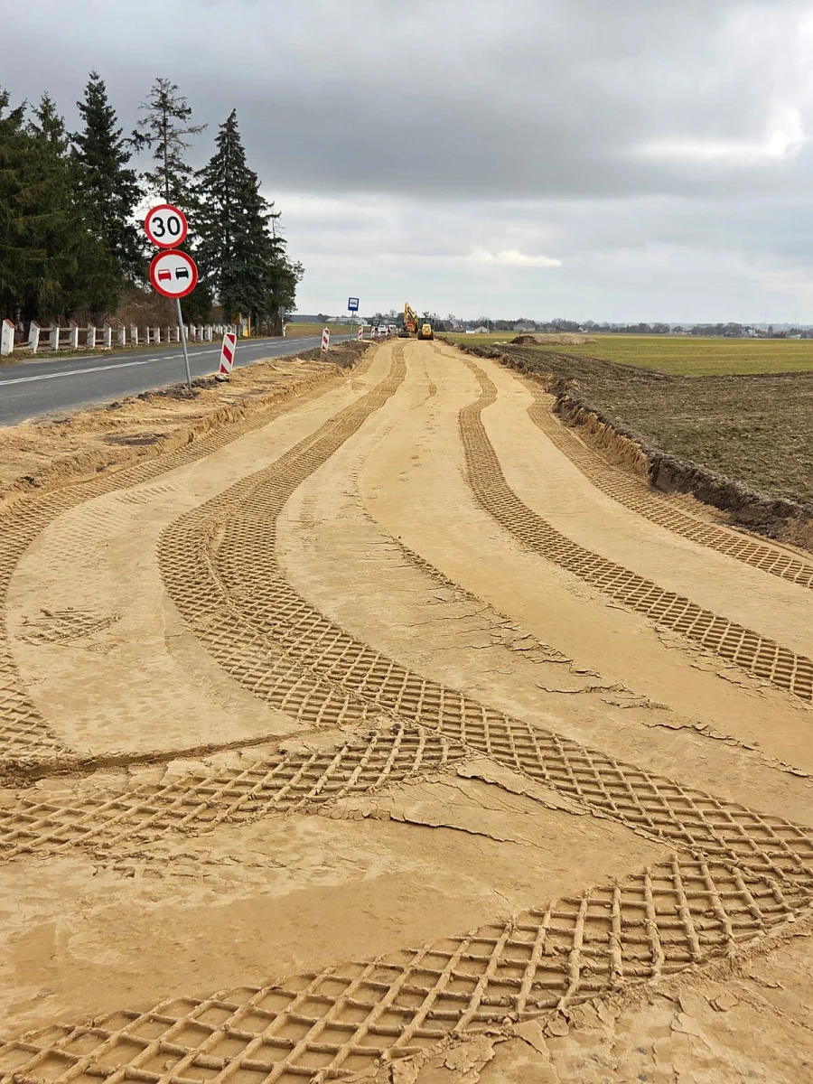 Przypomnijmy, że zakres zadania obejmuje: rozbiórkę istniejącej nawierzchni, poszerzenie jezdni oraz pasa ruchu w rejonie drogi dla rowerów i pieszych, przebudowę zjazdów, budowę ciągu pieszo-rowerowego o łącznej długości 3,55 km, budowę chodnika i peronu, wykonanie krawężników i obrzeży betonowych, wykonanie odwodnienia oraz rowów przydrożnych.